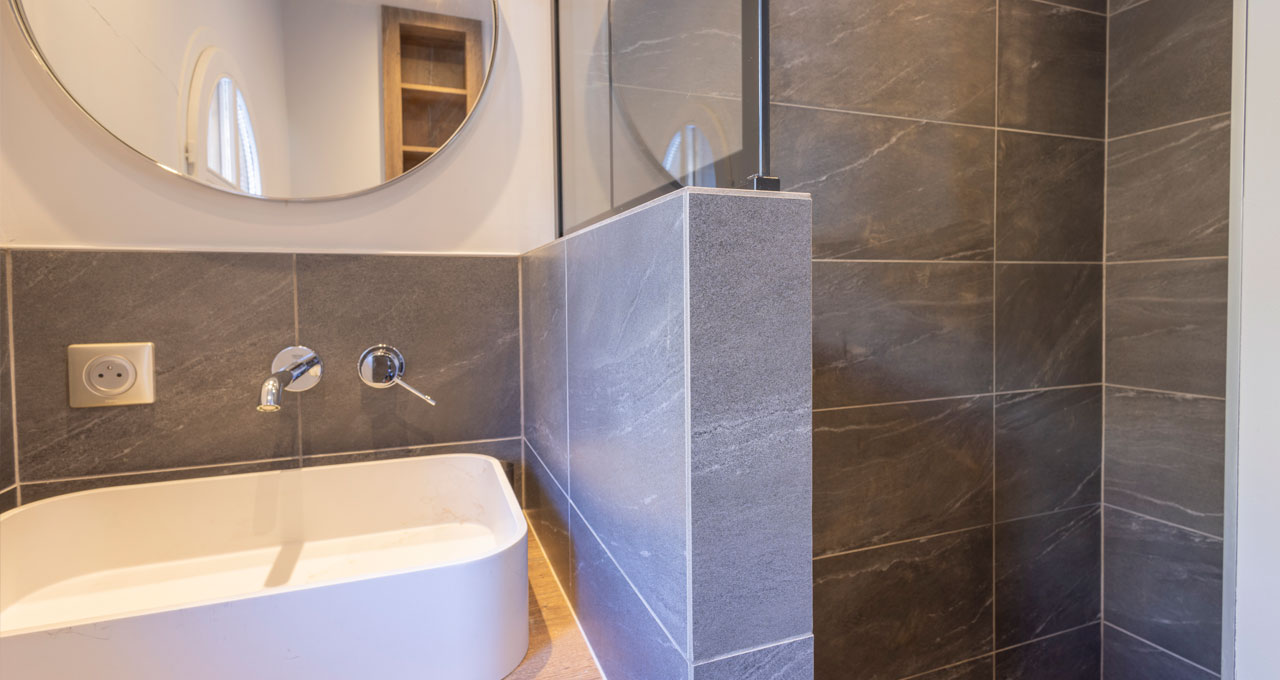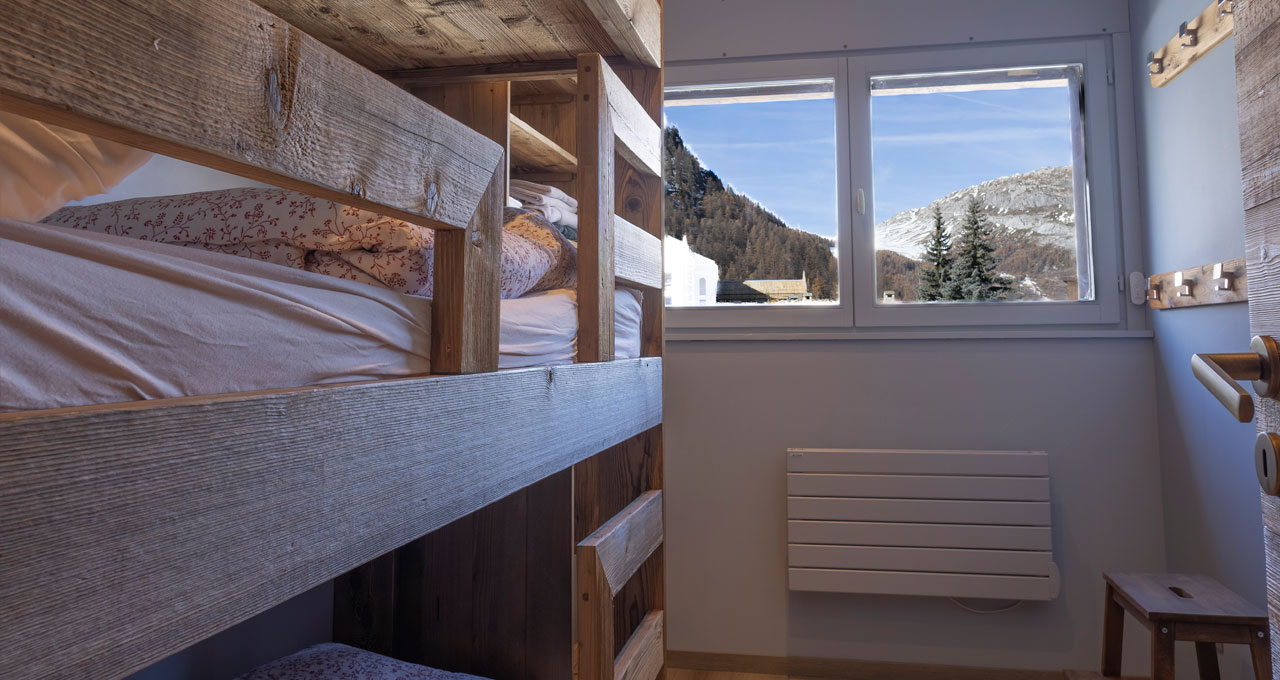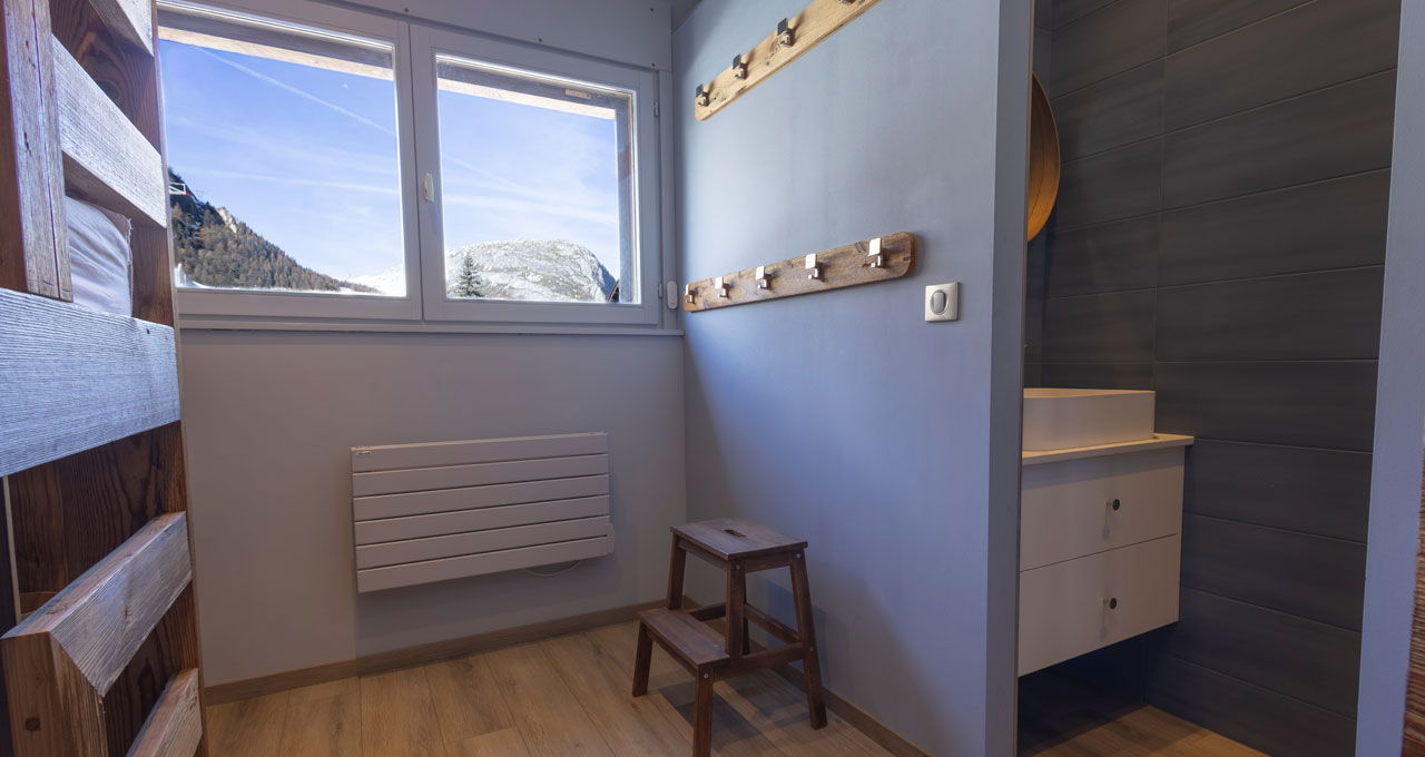 Une chambre lits superposés pour 3 personnes salle de douche attenante
